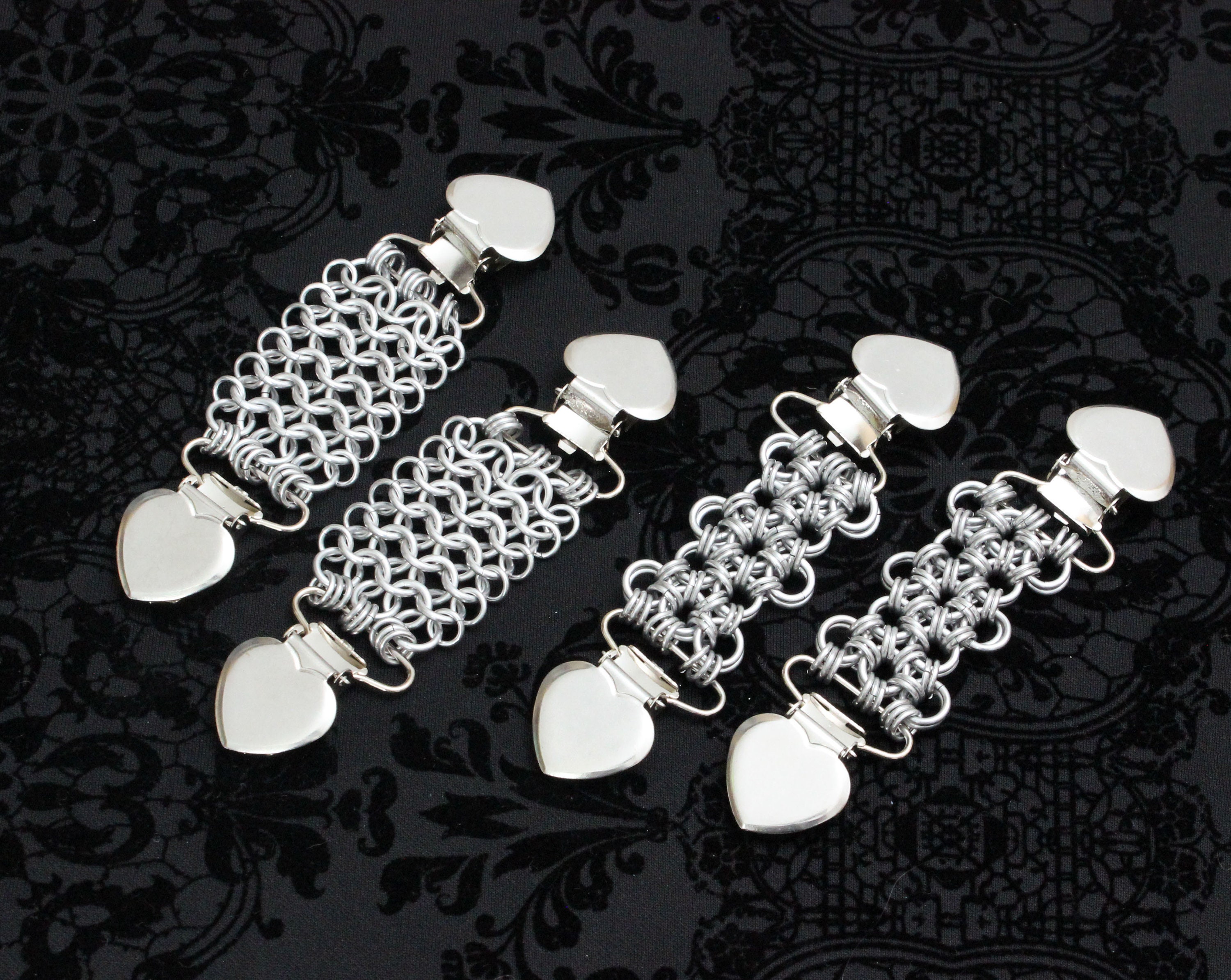 Cada clip es de metal y tiene una banda de nailon elástica que se estira desde 11 cm hasta 21 cm, así que se adapta a casi cualquier prenda.