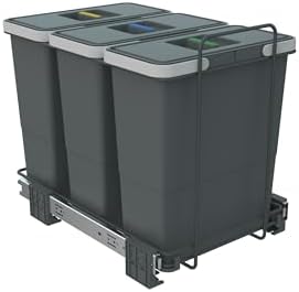 Es un cubo extraíble que se instala dentro de un mueble base con puerta batiente; cuando abres la puerta, el cubo sale automáticamente y la tapa se abre sola.